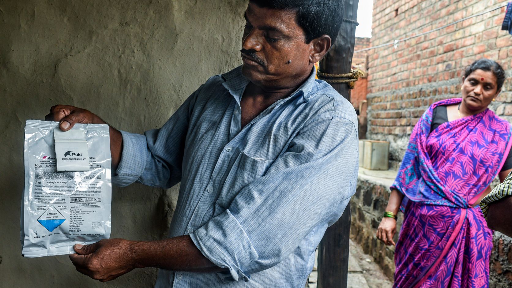 The 42-year-old father of two had inhaled so much poison, while spraying pesticides in a cotton field, that he could not be saved. Among these products was Polo, an insecticide sold by Syngenta. Geeta’s brother rented a car to bring her husband’s body back to their village.